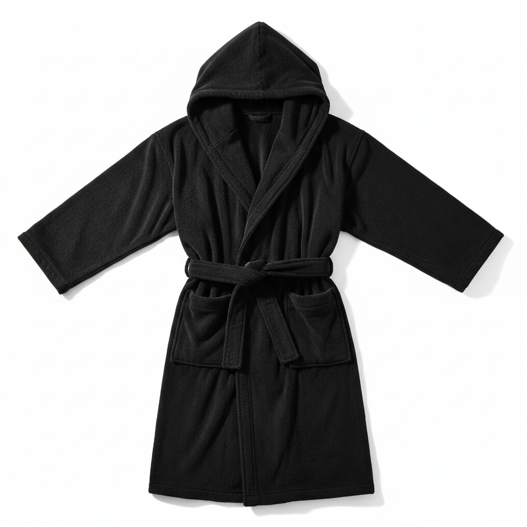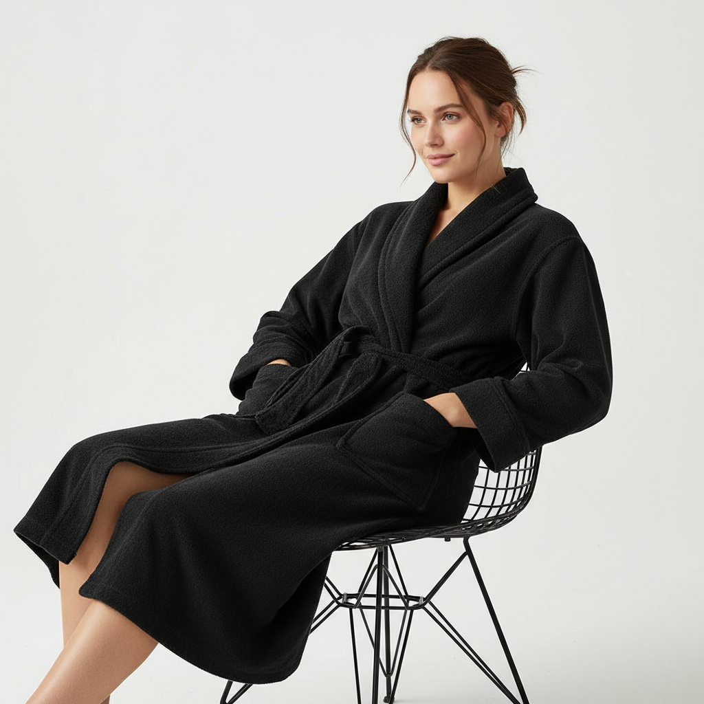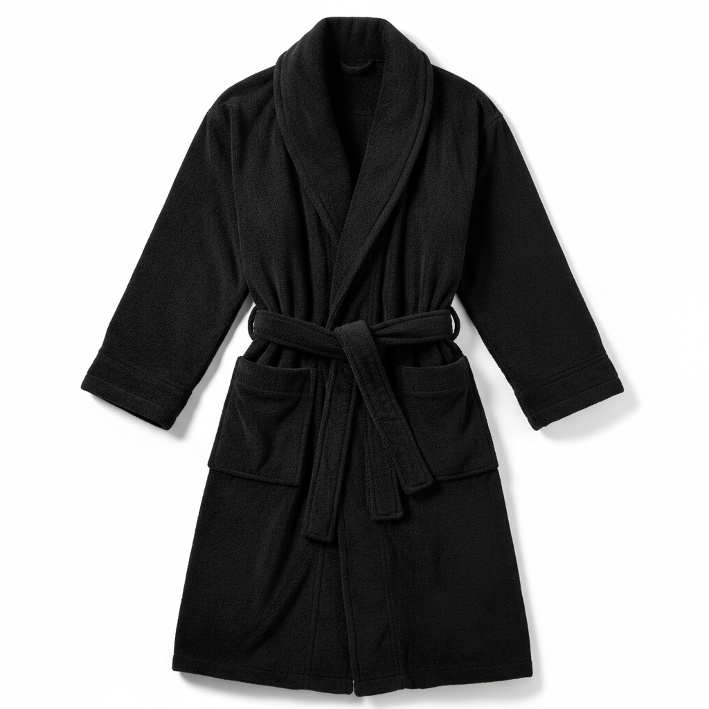 Элегантный черный махровый халат, приятный к телу и идеально подходит для дома.