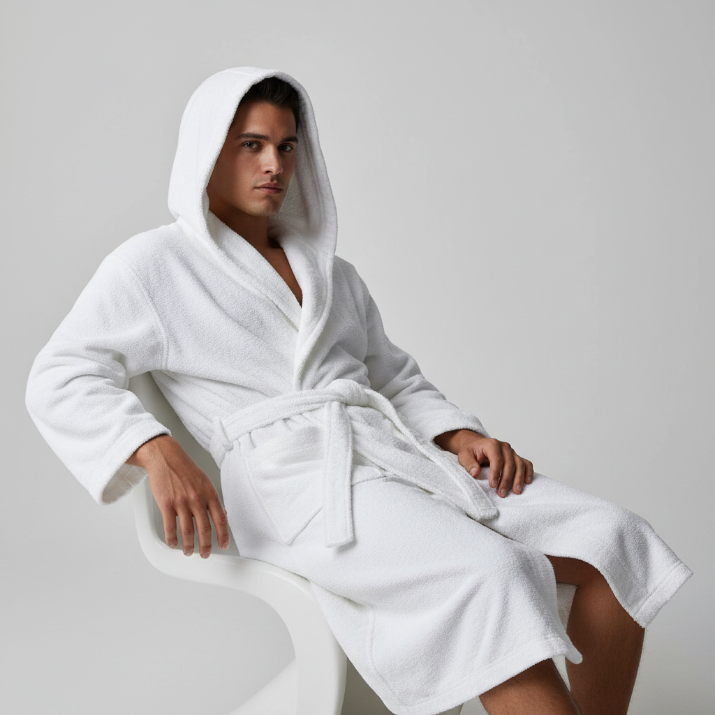 Уютный халат с капюшоном. Идеален для утреннего кофе и вечернего отдыха.
