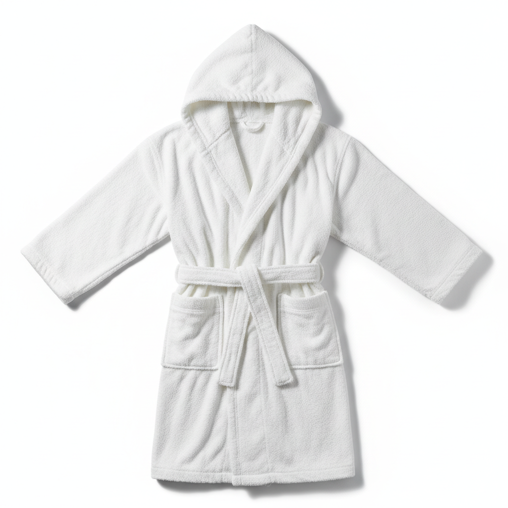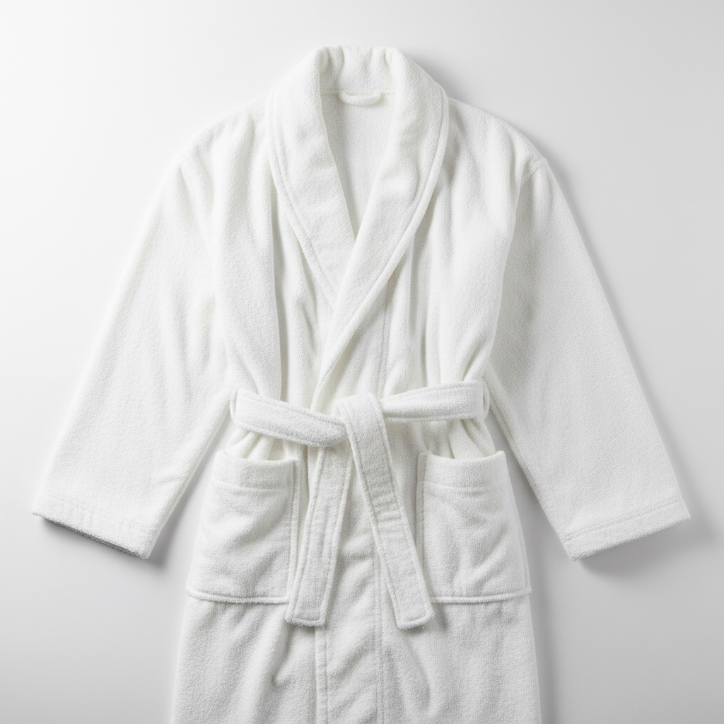 Классический белый махровый халат, мягкий и приятный к телу, для уютного отдыха дома.