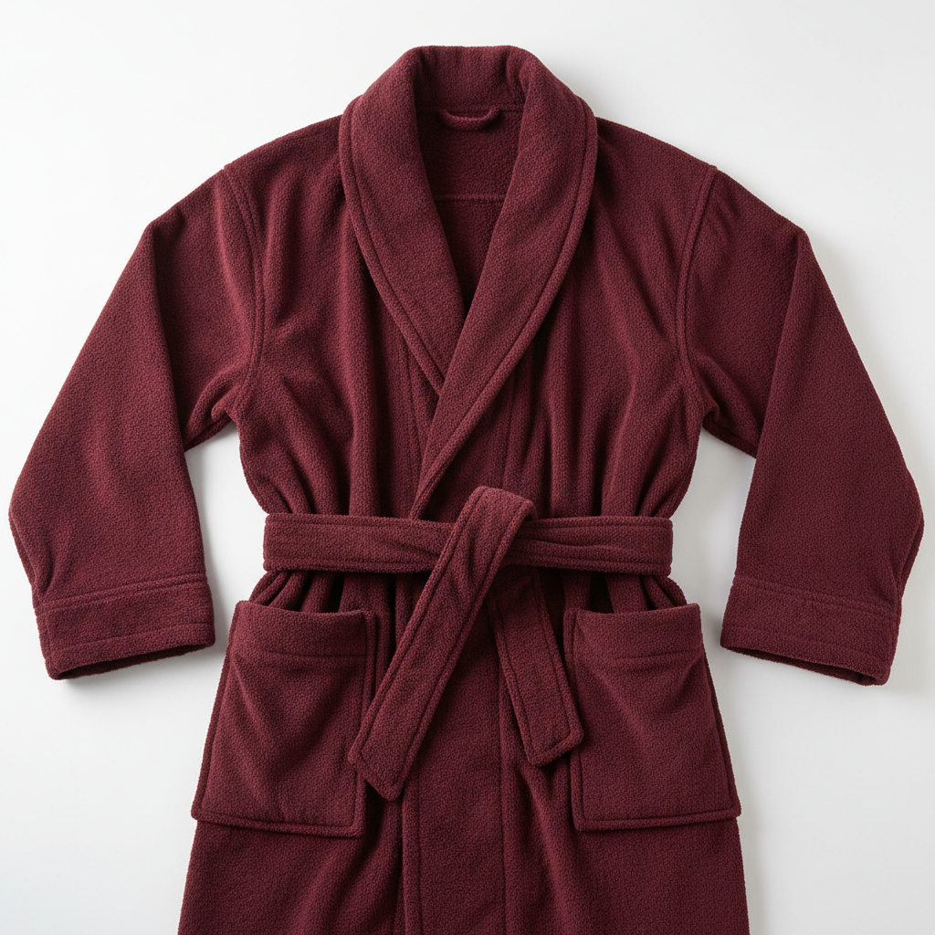 Стильный бордовый махровый халат, мягкий и уютный для домашнего комфорта.